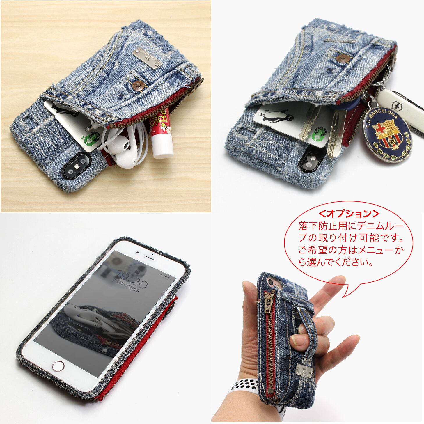 ①落下防止用にデニムループの取り付けが可能です。通常はループは付きません。
