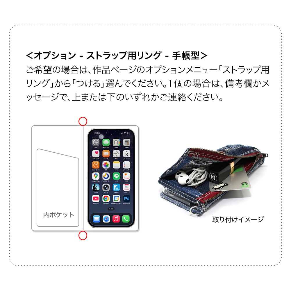 こちらは<オプション - ストラップ用リング>のご説明ページです。オプションのみのご注文は不可となりますので、ご注文の際は、各作品ページのオプションメニューから、選んでください。